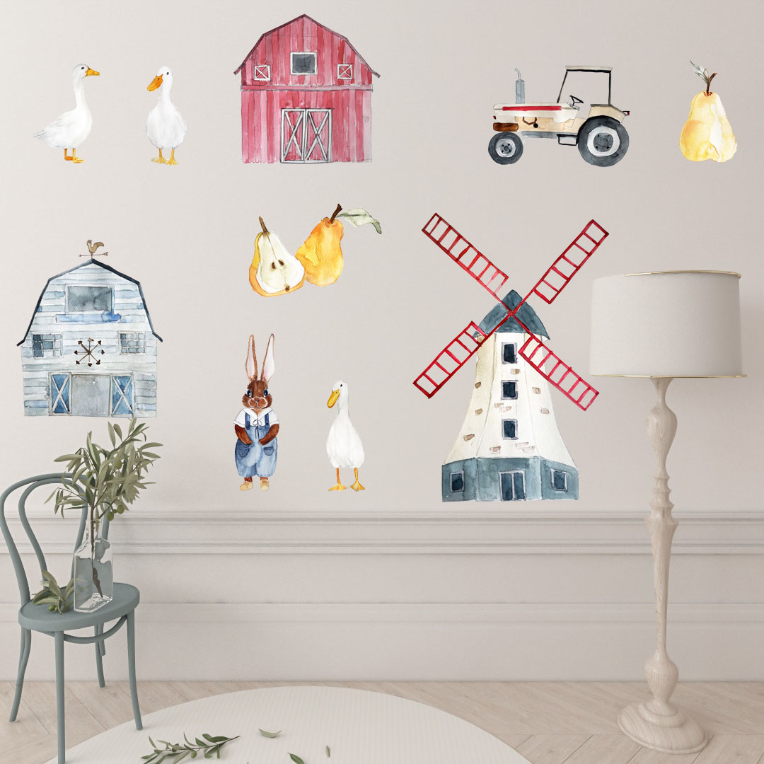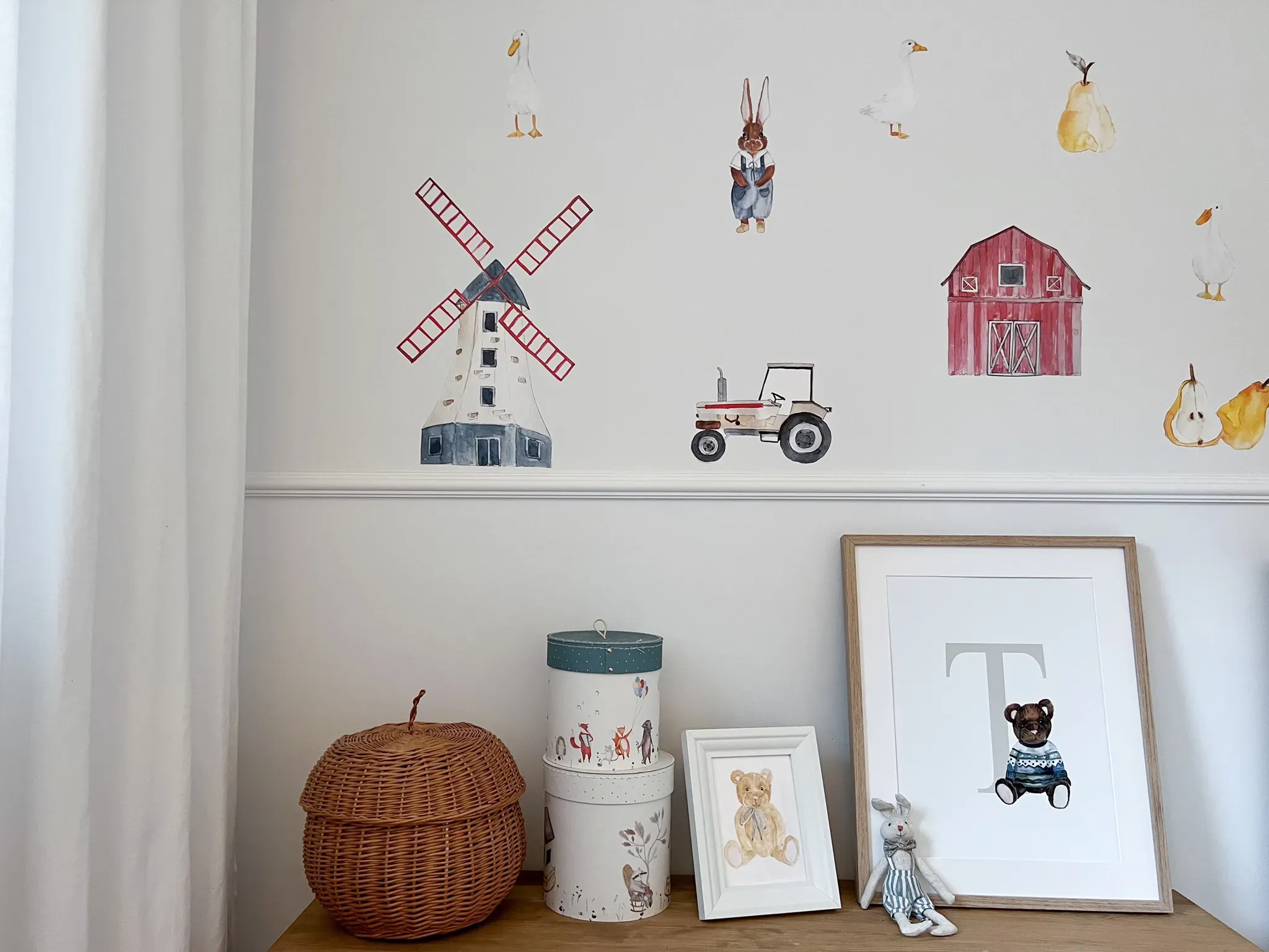 Wandsticker: Traktor, Mühle, Scheune, Enten… Bringen Sie eine idyllische Landschaft in das Zimmer Ihres Kindes