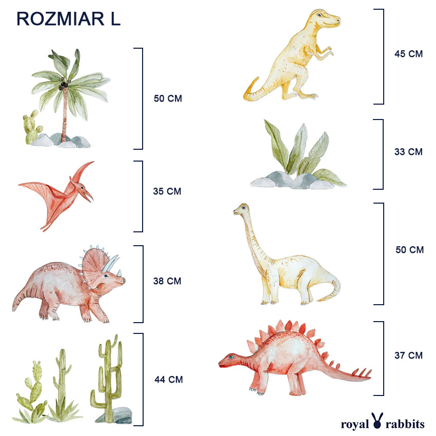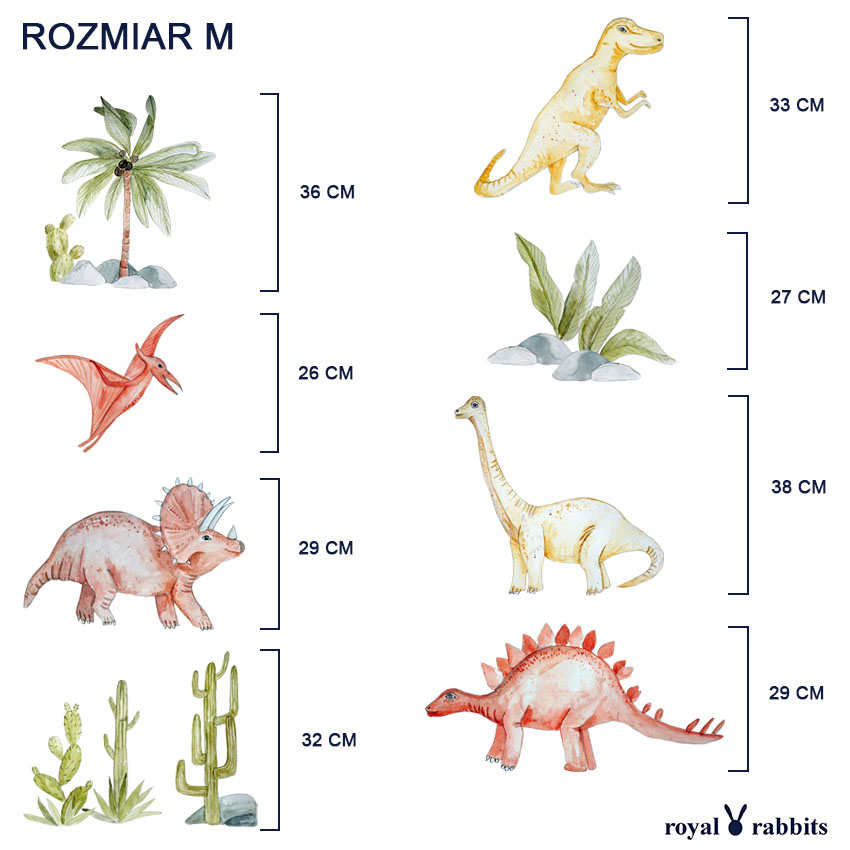 Aufkleber, die Dinosaurier darstellen, sind eine interessante Dekoration, die als zeitlos angesehen werden kann. Gleichzeitig sind die in unserem Angebot erhältlichen Modelle sehr niedlich und laden sogar in die Welt der Abenteuer ein und regen die Kreativität der Kinder an. Natürlich ist es auch erwähnenswert, dass sie in der Aquarelltechnik handgefertigt werden, was sie zu einem wahren Augenschmaus macht. Gedämpfte Farben und weiche Ränder verstärken das Gefühl der Sicherheit, ohne ein Übermaß an Reizen zu verursachen, was Ablenkung verhindert. Wir können die Aufkleber in verschiedenen Größen wie S, M oder L anbieten, um sie an die Größe des Raums anzupassen. Wenn Sie jedoch einen Spielbereich mit einem Dinosaurier-Thema einrichten möchten, spricht nichts dagegen, größere Aufkleber zu wählen, zumal sich diese schnell und einfach anbringen lassen und das Entfernen die Farbe nicht beschädigt. Sie können immer noch ein Tyrannosaurus-Poster oder ein Pterodactyl-Poster wählen.
