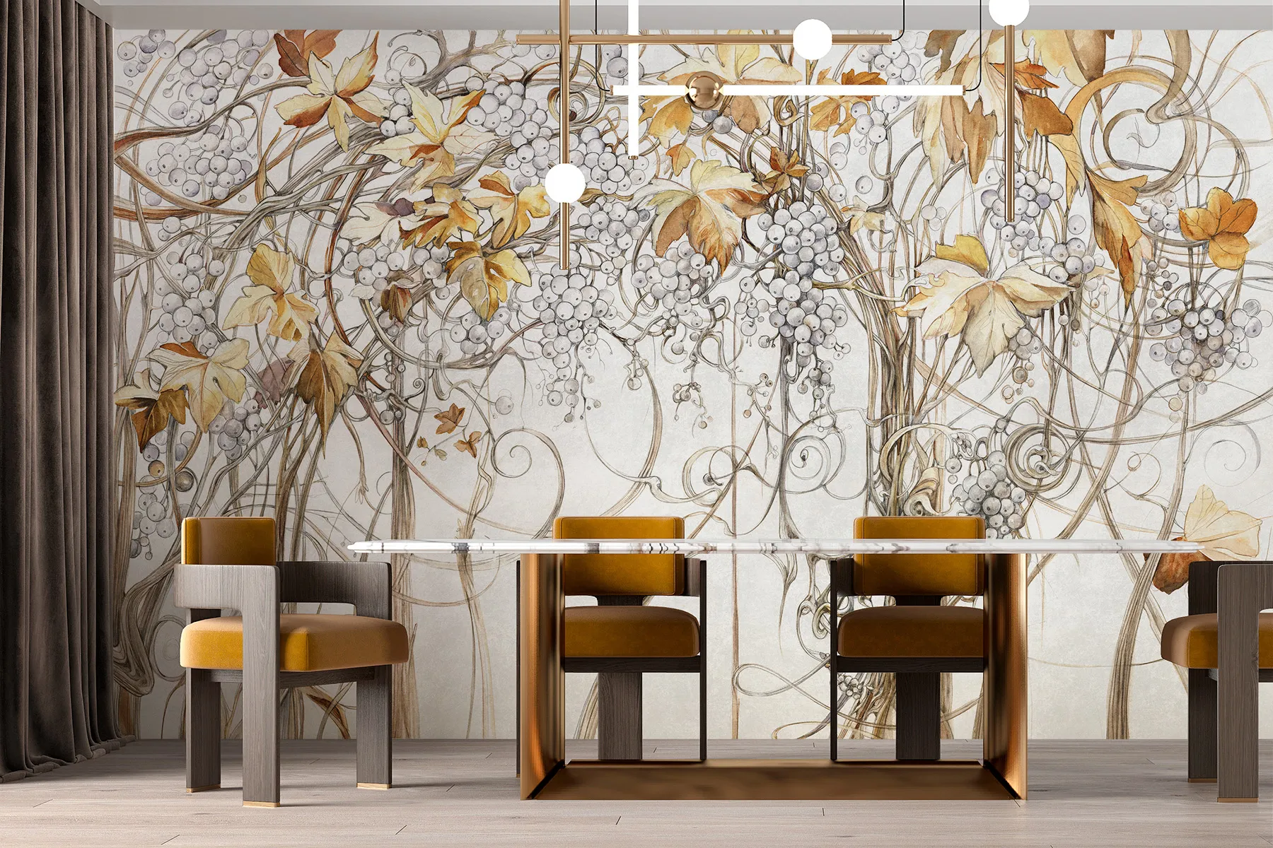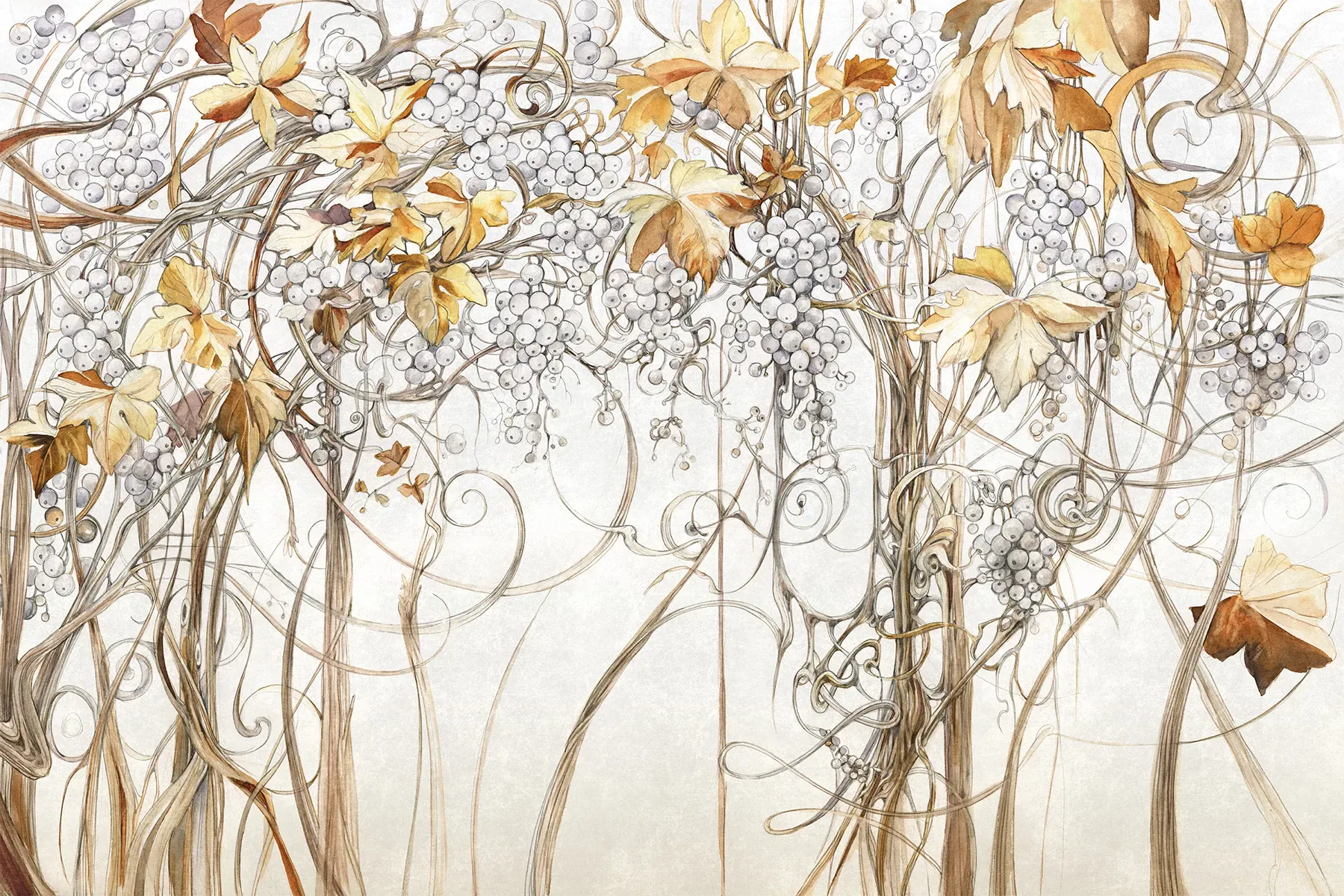 Die Blätter- und Traubentapete macht einen großartigen Eindruck in der Einrichtung und wird nicht nur zur Dekoration, sondern auch zu einer Quelle der Inspiration und positiven Energie. Erhältlich in einer beeindruckenden Maximalgröße von 600x400cm, ermöglicht es Ihnen, ein spektakuläres Arrangement selbst in den größten Räumen zu schaffen.