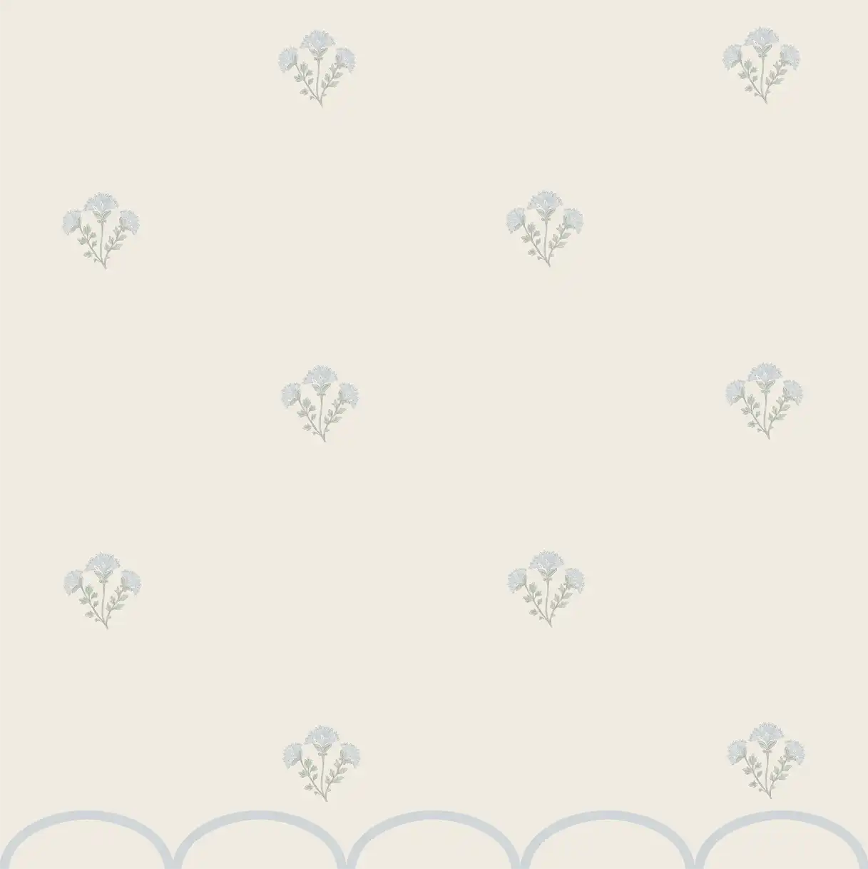 Dies ist eine Kollektion, die Tapeten im modernen Landhausstil enthält. Diese Tapete ist in den Farben Blau und Salbei gehalten und hat eine schöne Rüsche am unteren Rand der Tapete. Die Tapete mit blauen Blumen und Salbeiblättern ist die perfekte Wahl für ein Mädchenzimmer, Wohnzimmer, Küche, Esszimmer oder Flur. Die Tapete passt perfekt in ein modernes Bauernhaus, rustikal, idyllisch oder im Landhausstil.