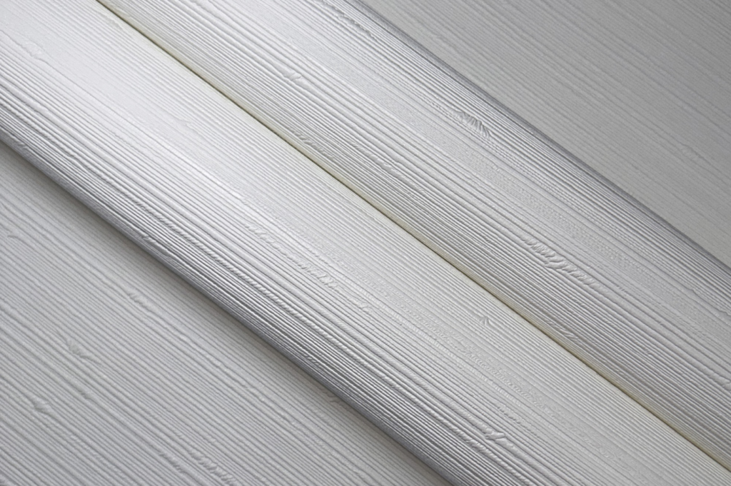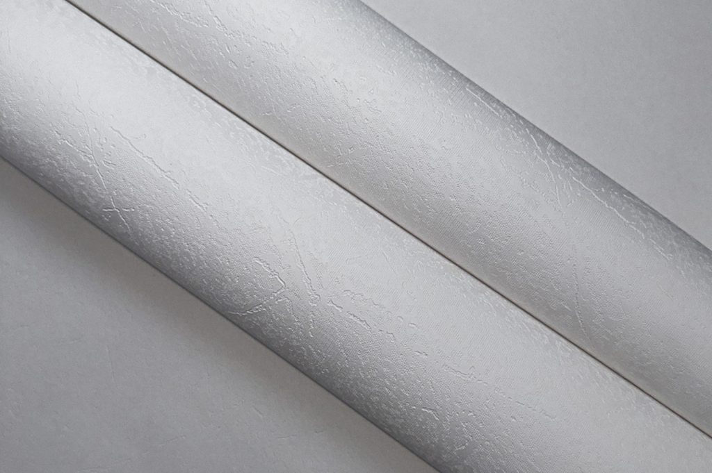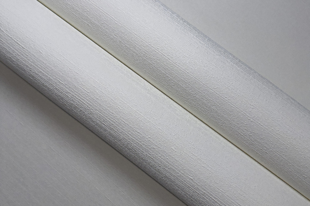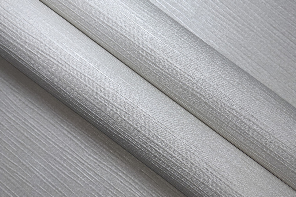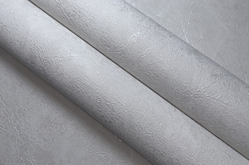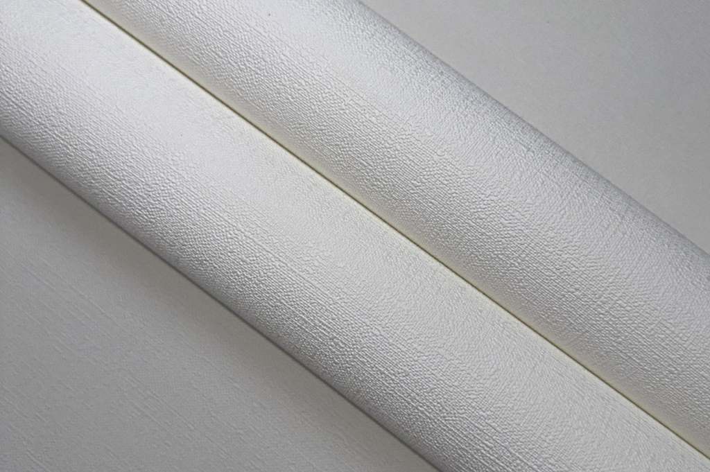 Vinyltapete mit Leinenstruktur und PVC-Anteil auf Vliesbasis.