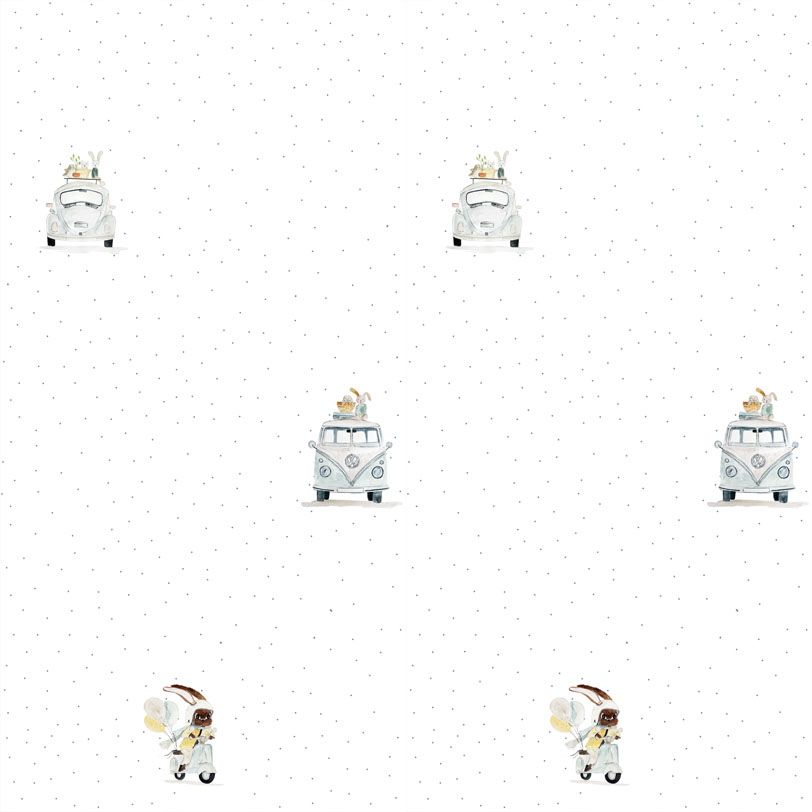 Sie können das Interesse Ihres Kindes an alten Autos “anstecken”, indem Sie eine Tapete mit Oldtimern wie dem Volkswagen Käfer, der Gurke und dem Vespa-Motorrad für sein Zimmer wählen. Die dezenten Grafiken werden durch ein Motiv aus zarten Punkten ergänzt, das dem Gesamtdesign Leichtigkeit verleiht. Eine solche Tapete eignet sich nicht nur für ein Zimmer im Vintage-Stil, sondern kann auch eine moderne Einrichtung ergänzen, zum Beispiel im industriellen Stil, wo sie mit Holzmöbeln mit Metallbeinen oder -griffen harmoniert.