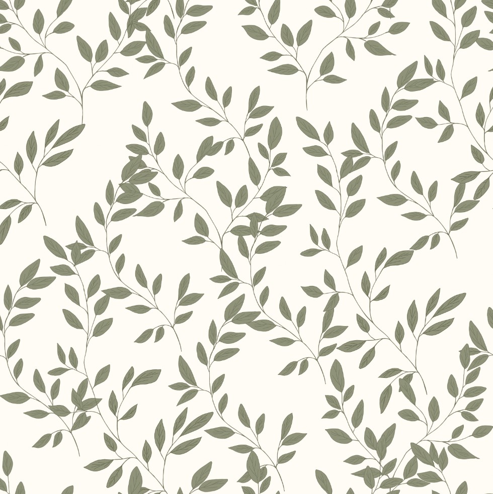 Tapete für das Wohnzimmer oder Schlafzimmer – Tapete mit kleinen Blättern und Zweigen| Zarte Dekoration