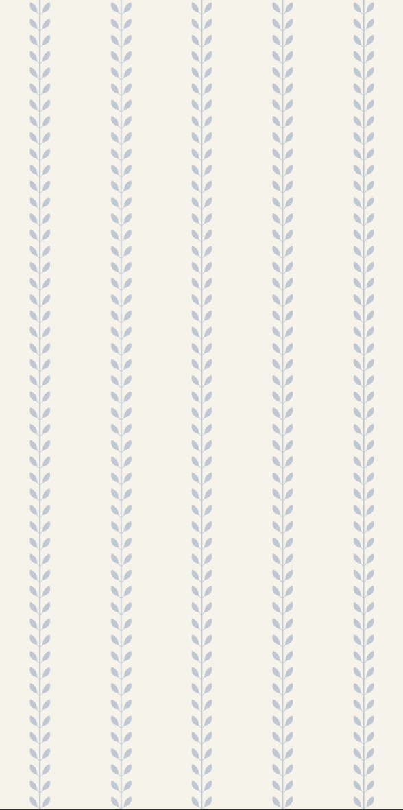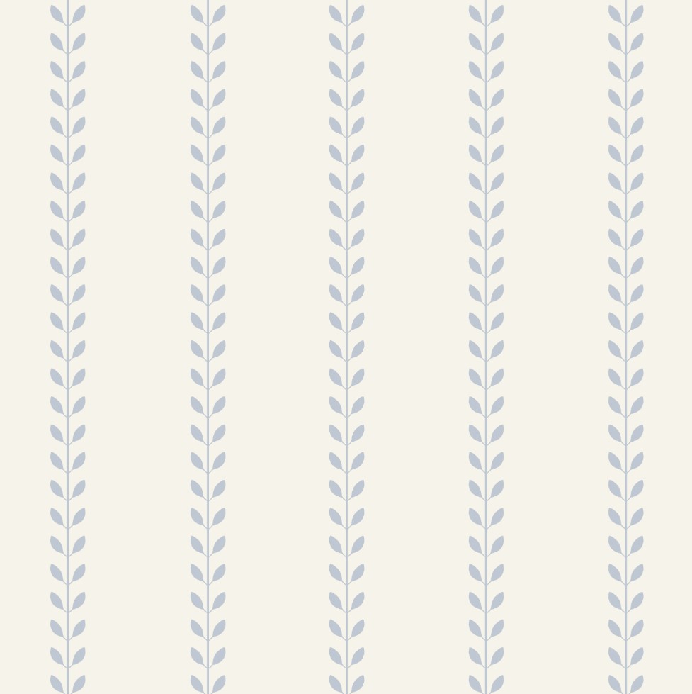 Landhausstil-Tapete – Tapete mit hellblauen Streifen und Blättchen | Zarte Dekoration