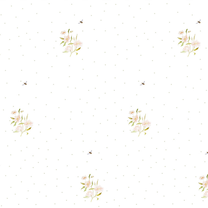 Die Tapete Blumen und Bienen bringt ein echtes Stück Natur ins Interieur. Handgemalte Blumenmotive in zarten Farbtönen, kombiniert mit charmanten Bienen, schaffen eine freundliche und friedliche Atmosphäre, ideal zum Spielen, Lernen und Entspannen.
