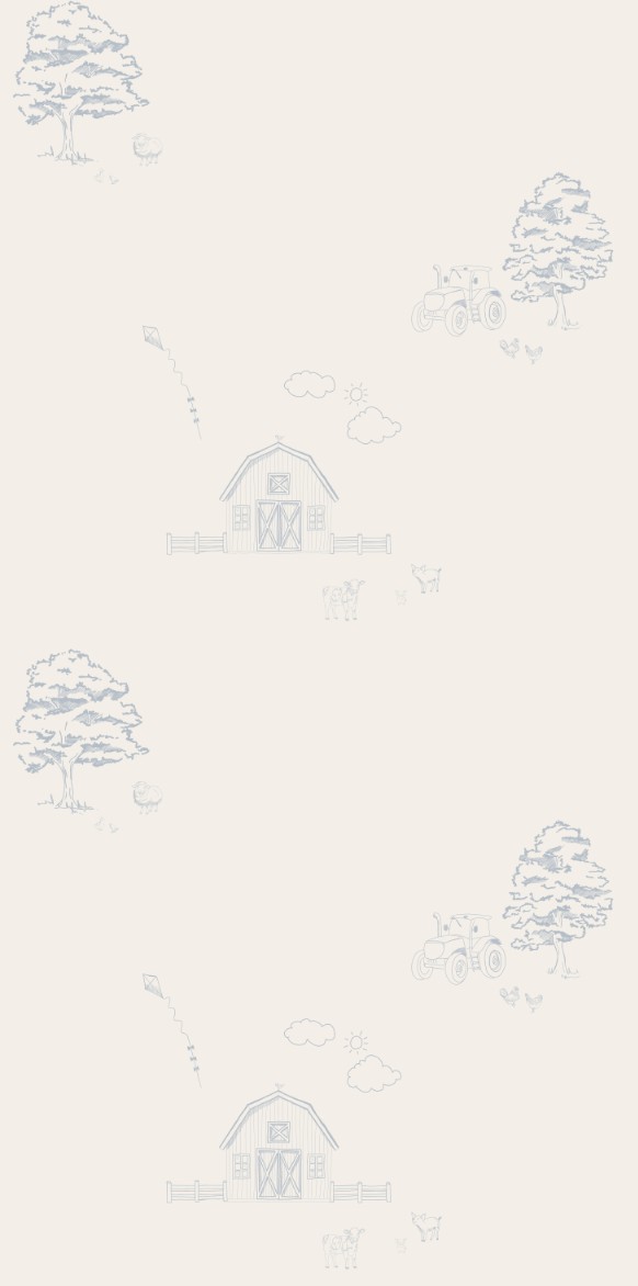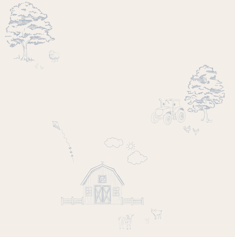 Tapete im Farmhouse-Stil – Tapete Dorf in Blau auf hellem Hintergrund | Zarte Dekoration