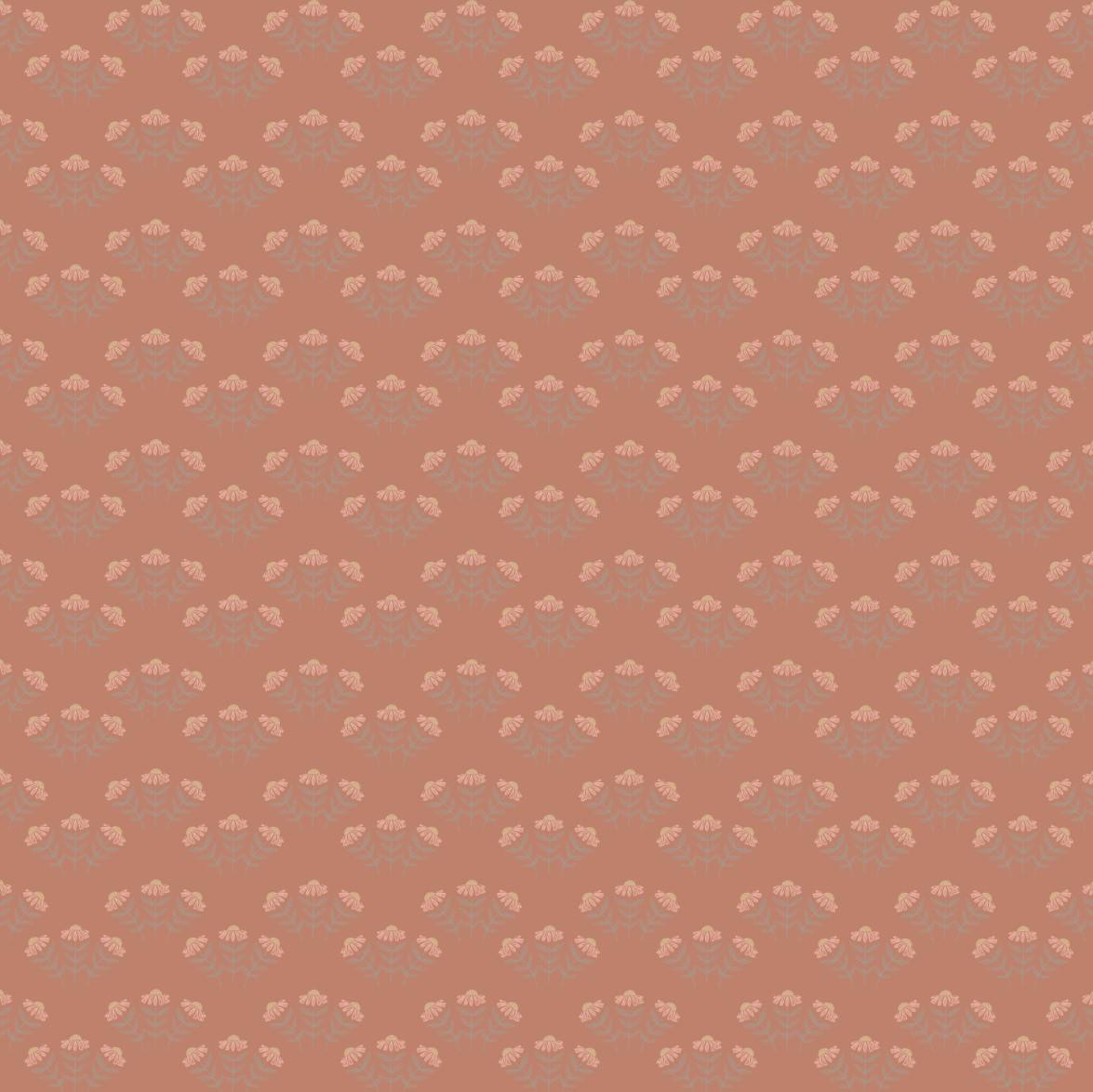 Die lachsfarbene Gänseblümchentapete auf Backsteinhintergrund ist ein florales Motiv in einer völlig neuen Interpretation. Das Muster besteht aus bezaubernden Gänseblümchen in einem Pastellrosa-Ton mit zartgrünen Stängeln und Blättern, die zu kleinen Sträußen zusammengefasst sind. Das Ergebnis ist ein sich wiederholendes, leicht geometrisches Muster. Ergänzt wird das Muster durch einen ausdrucksstarken, aber dennoch gemütlichen und warmen roten Hintergrund, der an die untergehende Sonne oder einen warmen polnischen Herbst erinnert.