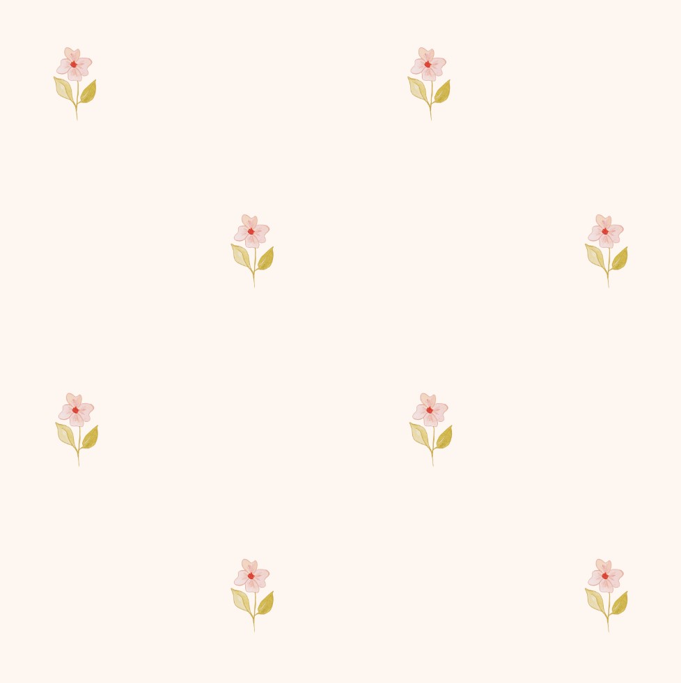 Tapete mit kleinen lachsfarbenen Blümchen auf hellem Hintergrund auf Rolle