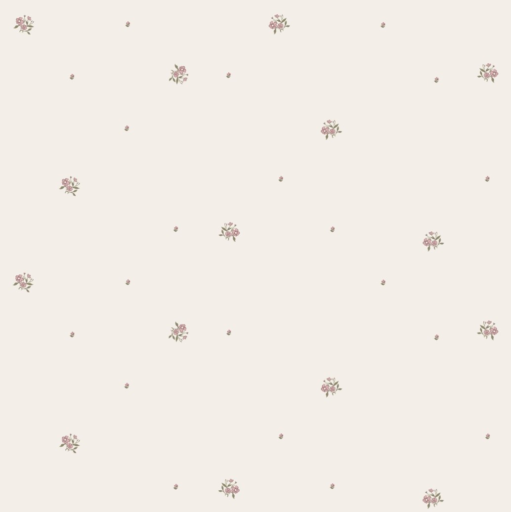 Tapete mit kleinen rosa Blümchen. Ideal für ein Mädchenzimmer.