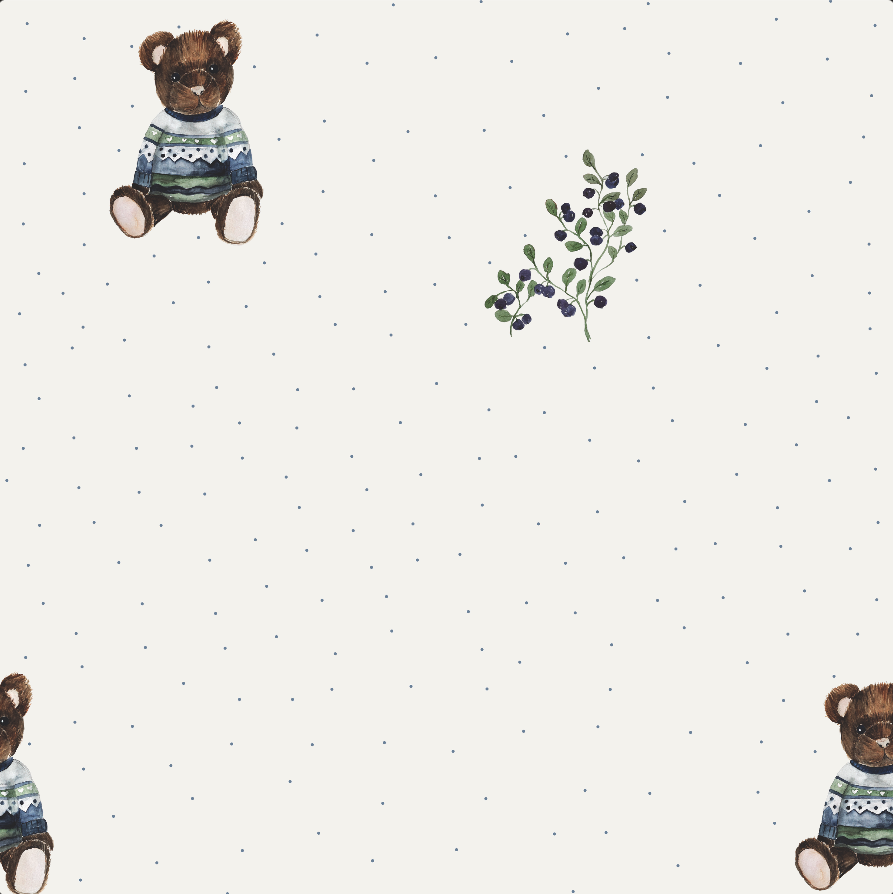 Handgemalte Tapete für Jungen- und Mädchenzimmer mit Teddybär, Blaubeeren und Punkten