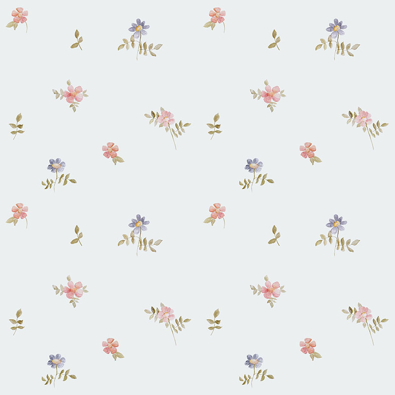 Dies ist eine Tapete mit blauen und hellblauen Blumen. Sie eignet sich perfekt für ein Mädchenzimmer. Sie wird kein dominantes Gestaltungselement sein, sondern ein schönes und romantisches Detail. Sie lässt sich wunderbar mit vielen Farben kombinieren.