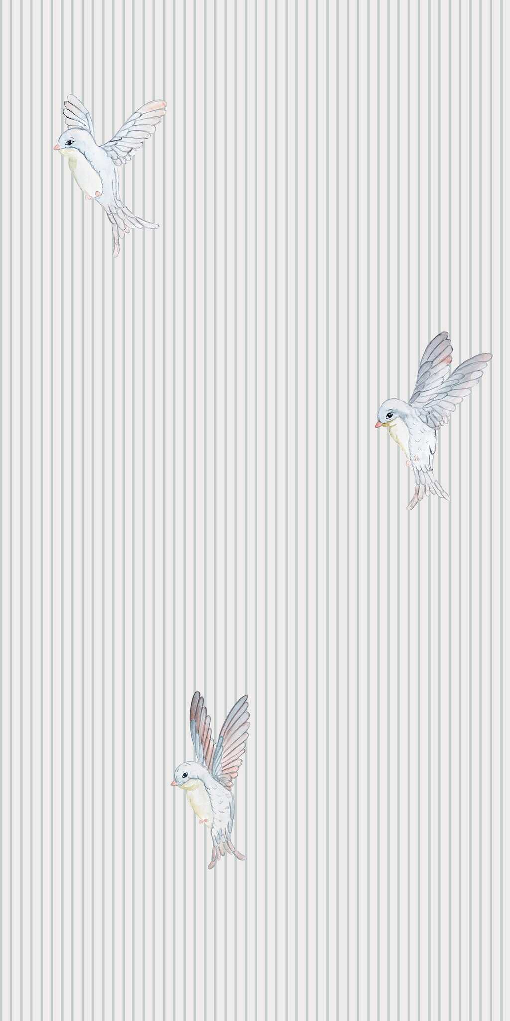 Tapete für Kinder mit Vögeln und Streifen – auf der Rolle