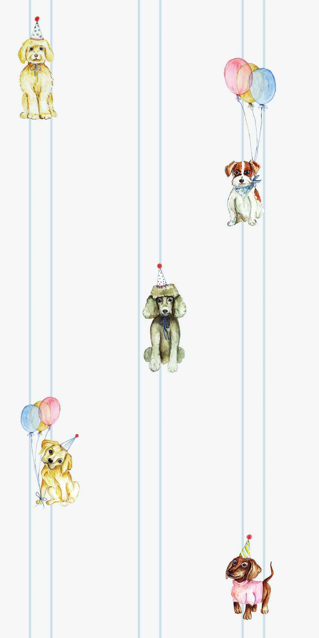 Fröhliche Kindertapete mit Hunden in Mützchen – auf der Rolle