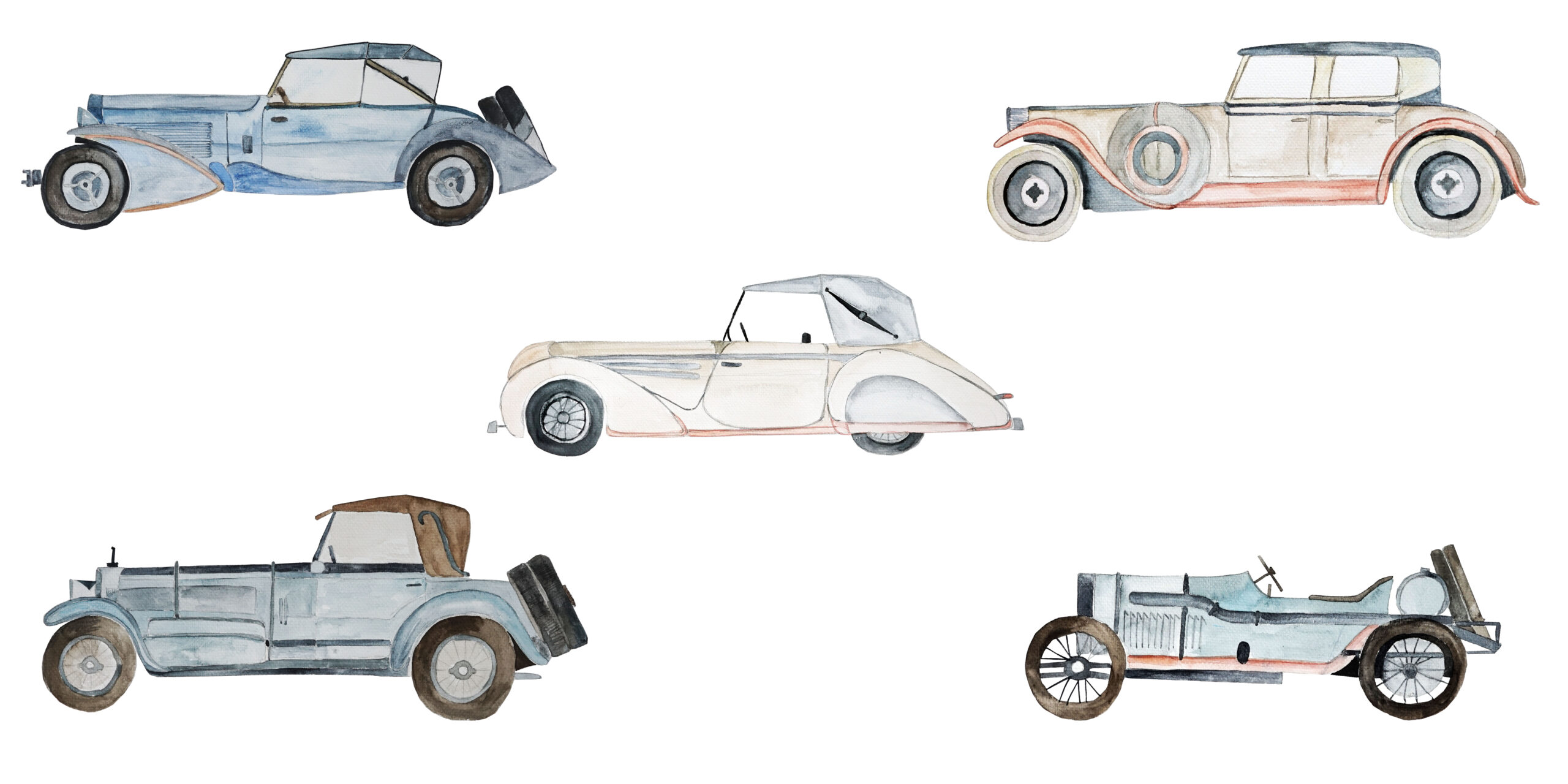 Aquarell-Sticker in Retro-Autos – Kunst und Nostalgie im Kinderzimmer